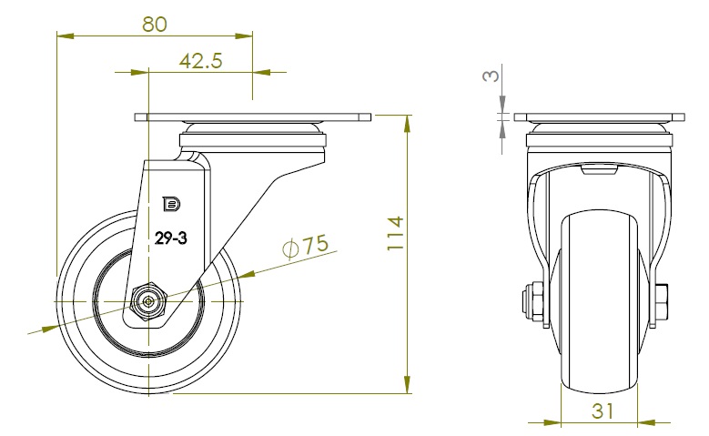 Metric Imperial Wheel Diameter 75mm Wheel Width 31mm |