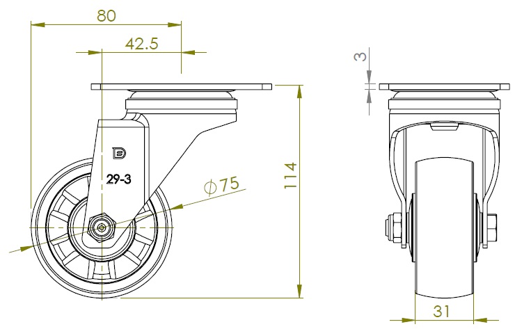 | Rubber Wheel Diameter × Wheel Width 75 x 31mm |