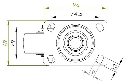 Swivel Caster with Riveted Fork and Stamping bracket with angled holes.