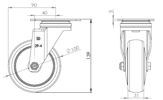 | PPR Wheel Diameter × Wheel Width 100 x 31mm |