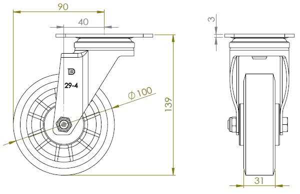 W Resolute Wheel Diameter × Wheel Width 100 x 31mm |