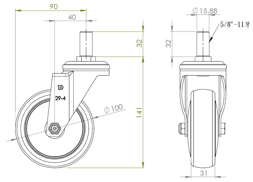 | PPR Wheel Diameter × Wheel Width 100 x 31mm |