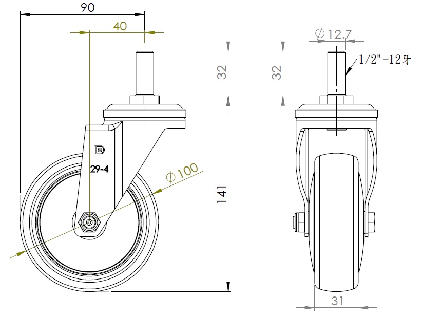 | Resolute Wheel Diameter × Wheel Width 100 x 31mm |