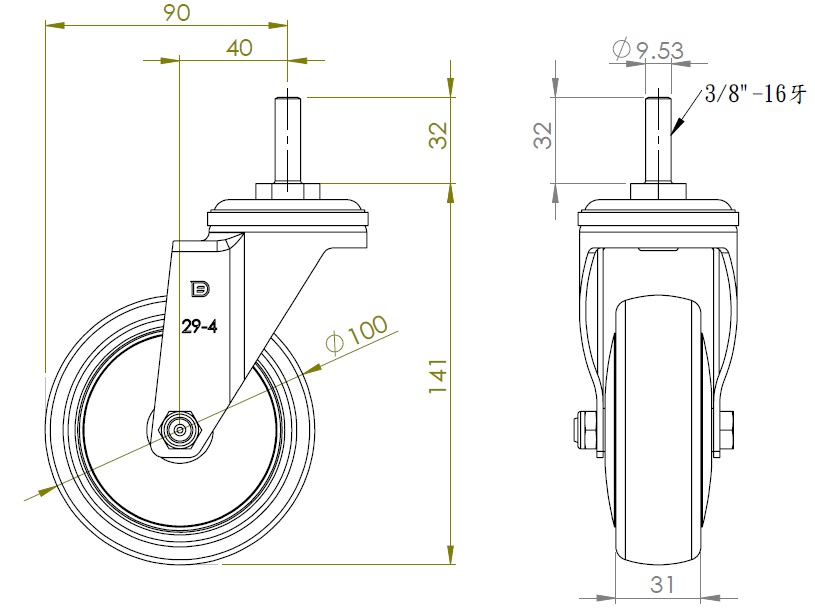 | Resolute Wheel Diameter × Wheel Width 100 x 31mm |