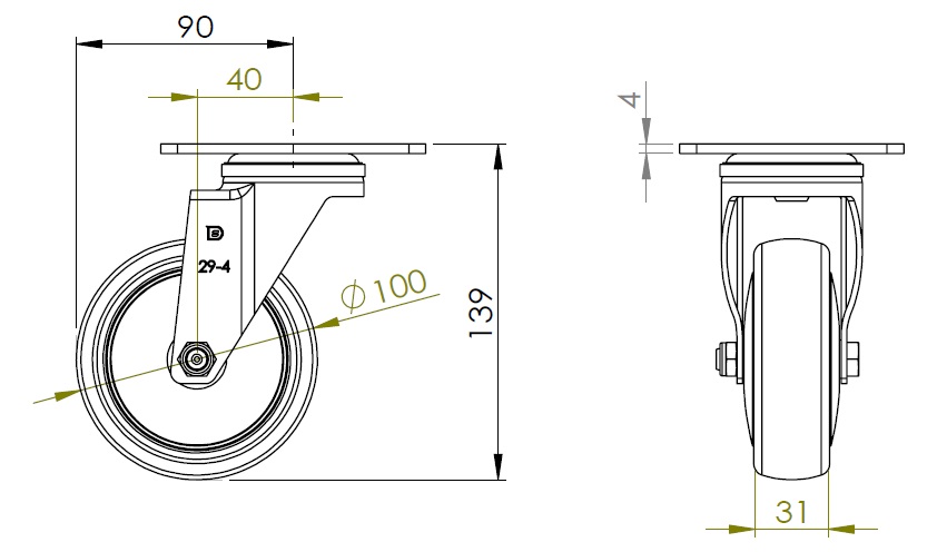 | Resolute Wheel Diameter × Wheel Width 100 x 31mm |