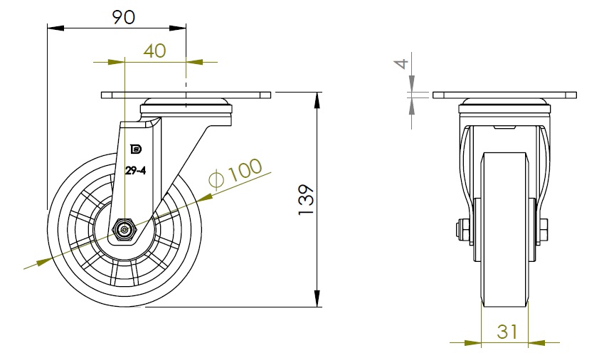 | W Resolute Wheel Diameter × Wheel Width 100 x 31mm |