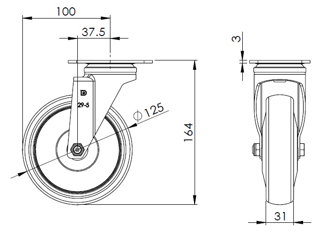 Metric Imperial Wheel Diameter 125mm Wheel Width 31mm |