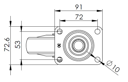 Swivel Caster with Riveted Fork and Stamping Fork for 72 x 53.5 mm (2-7/8" x 2-1/8") Bolt Hole Spacing.