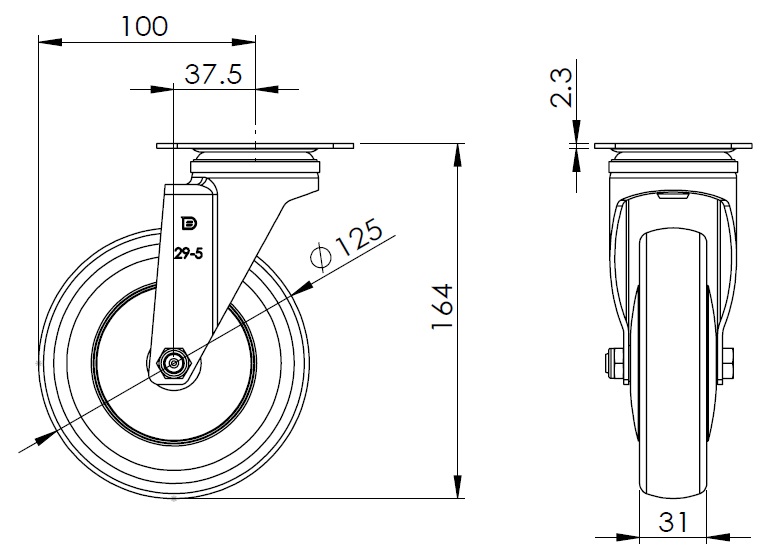 | Resolute Wheel Diameter × Wheel Width 125 x 31mm |