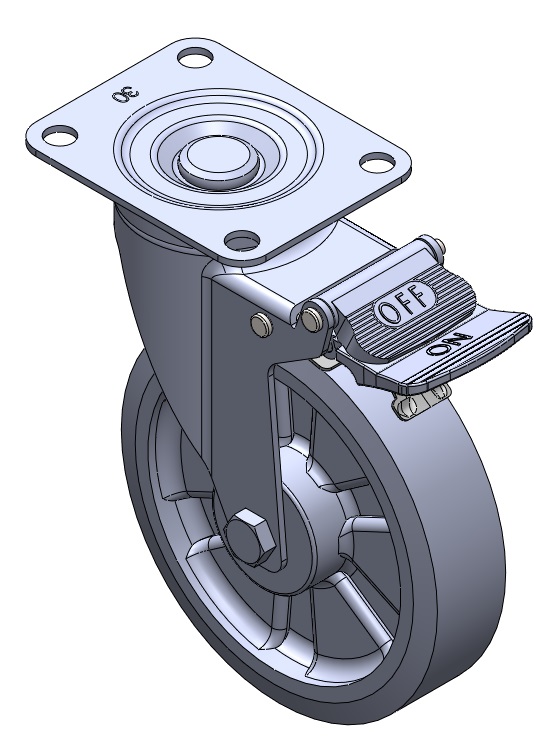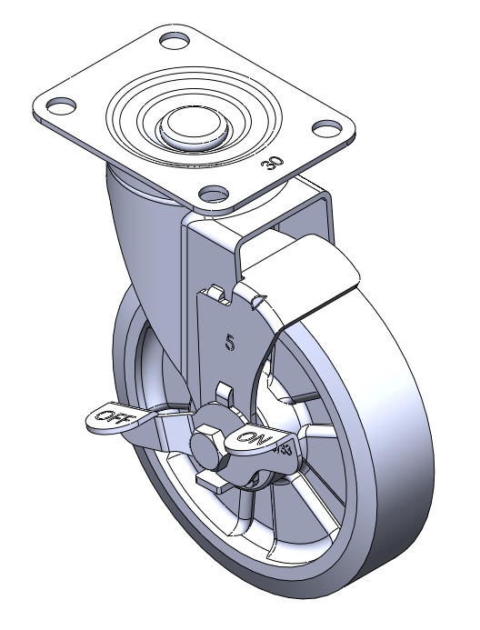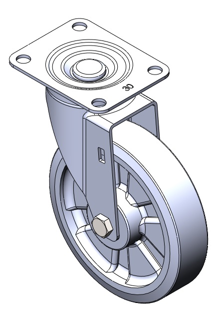 | Swivel Caster with Riveted, Stamping Fork and 72 x 53.5 mm (2-7/8" x 2-1/8") Bolt Hole Spacing. Zine-Plated, Mounting Type - Top Plate. Reinforced, impact-resistant polypropylene core with High-Quality Reinforced Polypropylene Rubber (TPR) Wheel Tread. Dark gray, Bearing with Ball Bearings. |