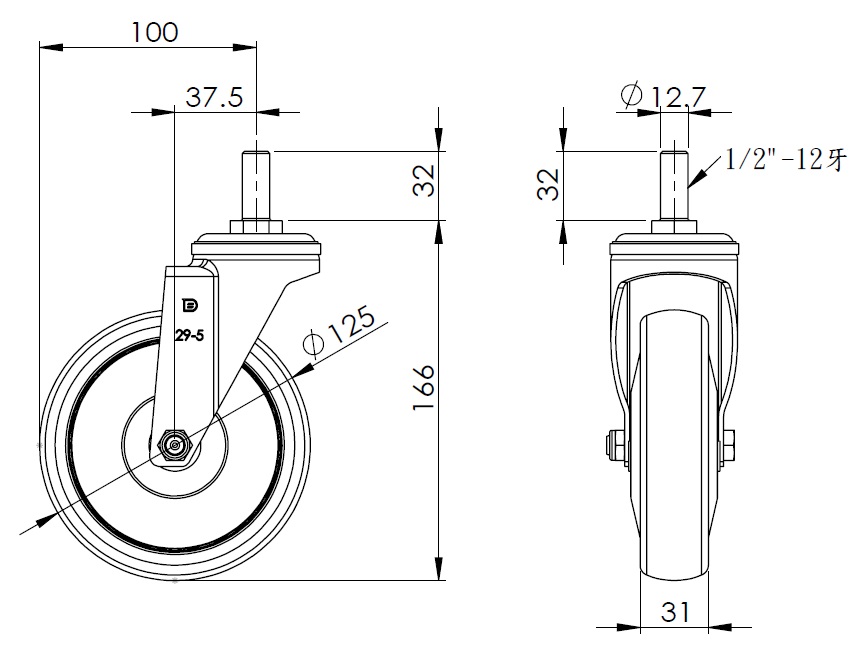 | PPR Wheel Diameter × Wheel Width 125 x 31mm |
