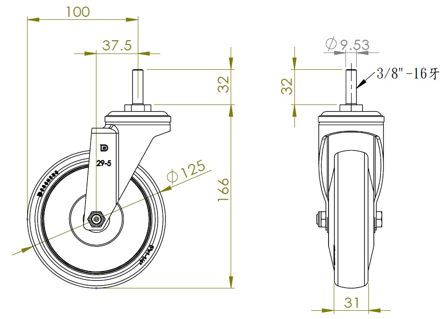 | PPR Wheel Diameter × Wheel Width 125 x 31mm |