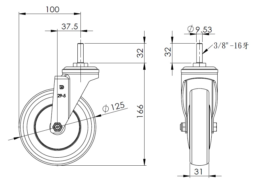 | Resolute Wheel Diameter × Wheel Width 125 x 31mm |