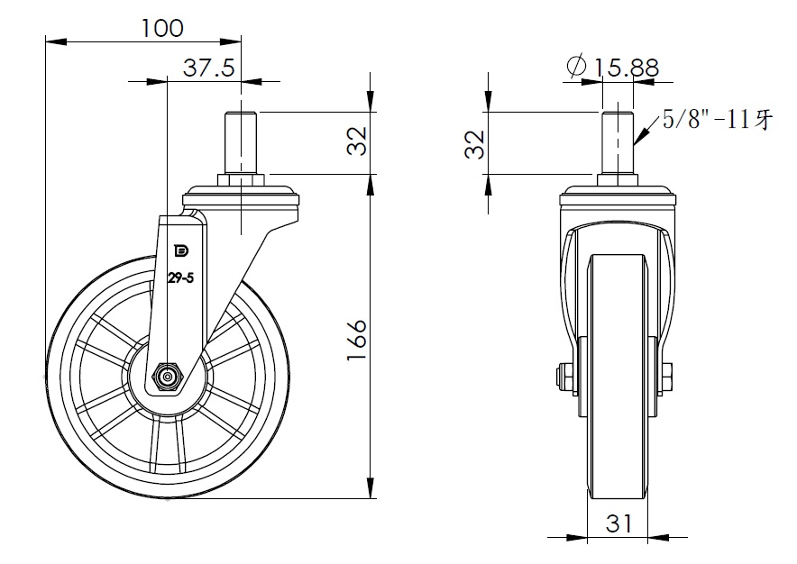 Swivel Caster, Riveted Stamping Fork - 5/8-11 threads