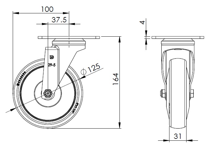Metric Imperial Wheel Diameter 125mm Wheel Width 31mm |