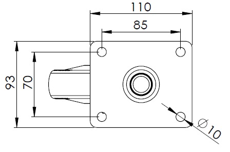 Plate Size 110 x 93mm Bolt Hole Spacing 85 x 70mm Plate Hole 10mm Offset 37.5mm Swivel Interference 200mm Overall Height 164mm Swivel Radius 100mm Hardness Of Tread 82±5° Shore A Load Capacity (Dynamic) 100kgs |