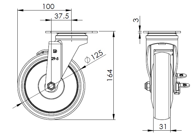 | PPR Wheel Diameter × Wheel Width 125 x 31mm |