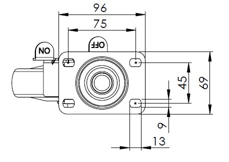 | Casters with Side Brakes and With locking system. Top Plate Riveted and Fork – 75 x 45 mm (3" x 1-3/4") Bolt Hole Spacing. Zine-Plated, Top Plate (3T) Mounting Type system. High-Quality Impact-Resistant Polypropylene Wheel Center, High-Quality Reinforced Polypropylene Rubber (TPR) Wheel Tread. Dark gray, Plain Bearing. |