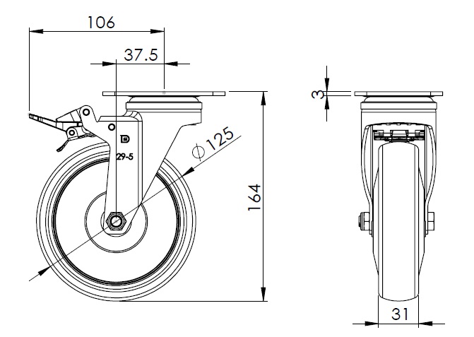 | PPR Wheel Diameter × Wheel Width 125 x 31mm |