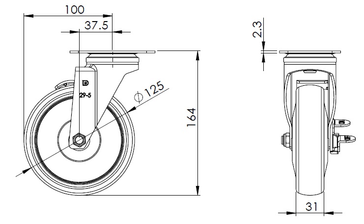 | PPR Wheel Diameter × Wheel Width 125 x 31mm |