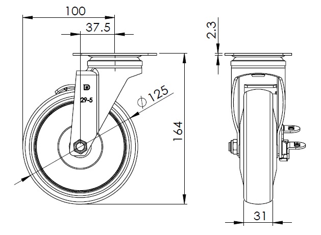| PPR Wheel Diameter × Wheel Width 125 x 31mm |