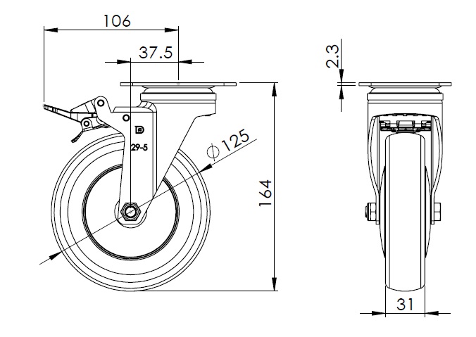 | Resolute Wheel Diameter × Wheel Width 125 x 31mm |
