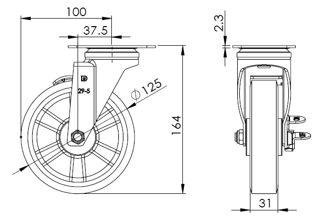 Metric Imperial Wheel Diameter 125mm Wheel Width 31mm |