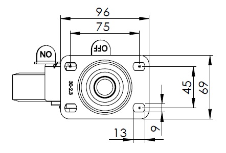 Plate Size 96 x 69mm Bolt Hole Spacing 75 x 45mm Plate Hole 13 x 9mm Offset 37.5mm Swivel Interference 200mm Overall Height 164mm Swivel Radius 100mm Hardness Of Tread 72±5° Shore A Load Capacity (Dynamic) 147kgs |