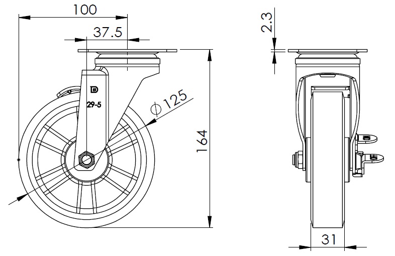 | W Resolute Wheel Diameter × Wheel Width 125 x 31mm |