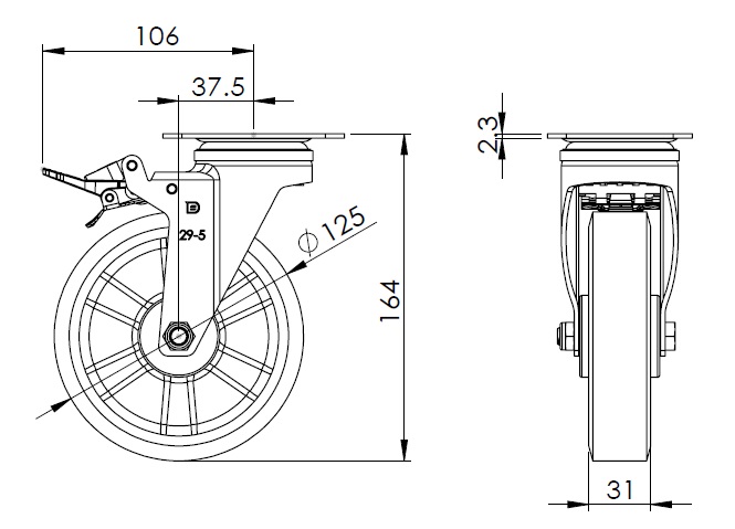 | W Resolute Wheel Diameter × Wheel Width 125 x 31mm |