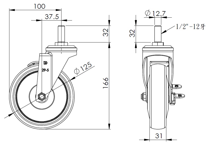 | PPR Wheel Diameter × Wheel Width 125 x 31mm |