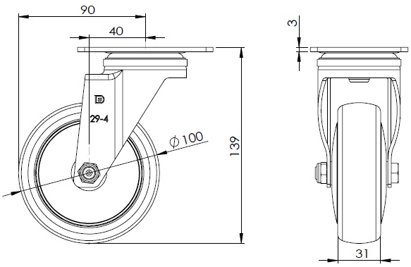 | Resolute Wheel Diameter × Wheel Width 100 x 31mm |