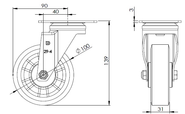 | W Resolute Wheel Diameter × Wheel Width 100 x 31mm |