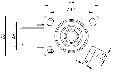 Zine-Plated, Top Plate (3T) Mounting Type mechanism. Reinforced, impact-resistant polypropylene core with High-Quality Reinforced Polypropylene Rubber (TPR) Wheel Tread. Dark gray, Ball Bearings. |