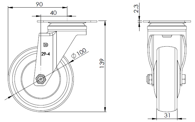 | PPR E-conductive Wheel Diameter × Wheel Width 100 x 31mm |