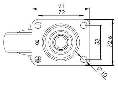 Sliding Caster, Top Plate with Riveted Stamping Fork and 72 x 53.5 mm (2-7/8" x 2-1/8") Bolt Hole Spacing