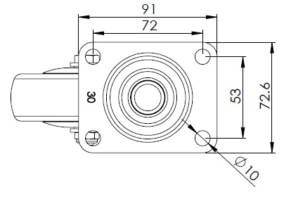 Sliding Caster, Top Plate with Riveted Stamping Fork and 72 x 53.5 mm (2-7/8" x 2-1/8") Bolt Hole Spacing