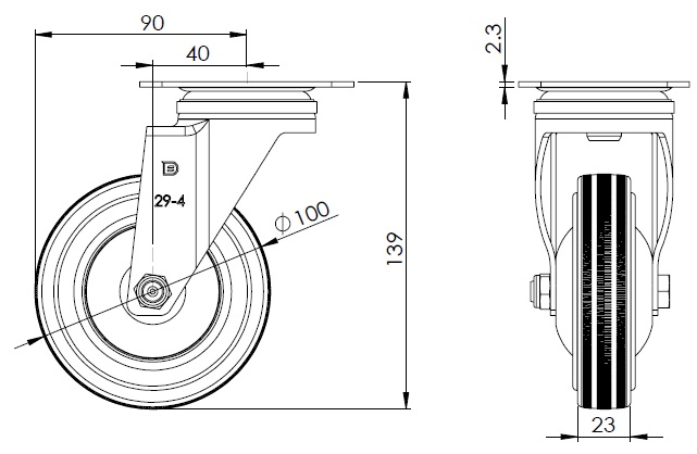 | Wheel for institution equipments (grey tire) Wheel Diameter × Wheel Width 100 x 23mm |