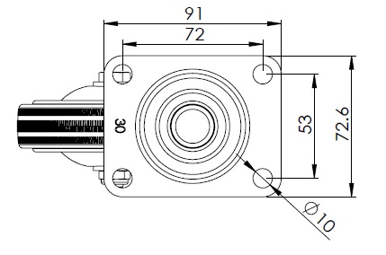 Swivel Caster, Top Plate with Riveted, Stamping Fork and 72 x 53.5 mm (2-7/8" x 2-1/8") Bolt Hole Spacing