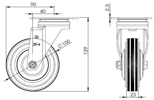 | Wheel for institution equipments (grey tire) Wheel Diameter × Wheel Width 100 x 23mm |