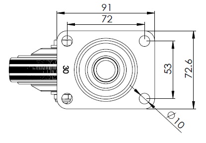 Swivel Caster, Top Plate with Riveted Stamping Fork and 72 x 53.5 mm (2-7/8" x 2-1/8") Bolt Hole Spacing.