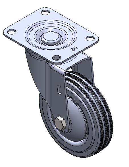 Zine-Plated, Mounting Type - Top Plate, with iron cover. High-Quality Impact-Resistant Polypropylene Wheel Center with High-Quality Reinforced Polypropylene Rubber (TPR) Wheel Tread. Gray-green color, Plain Bearing. |