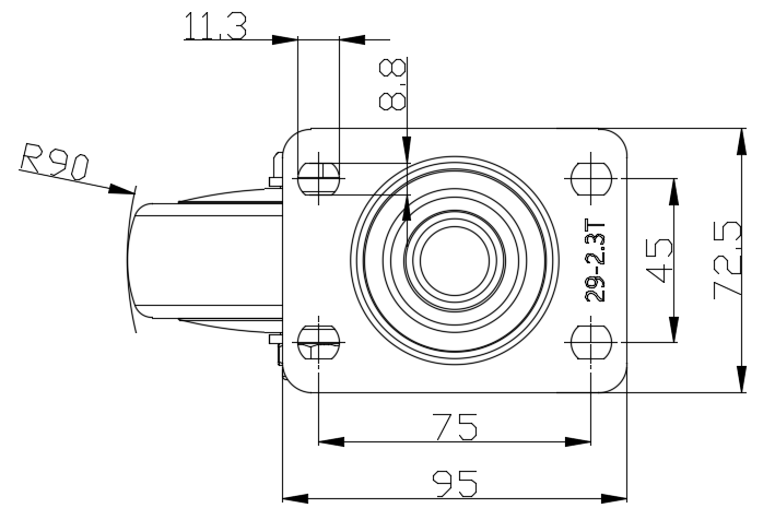 | Wheel tread: Thermoplastic rubber elastomer (TPR) Wheel Center: Made of high-quality impact-resistant polypropylene Drawings are for reference only and may differ from the product |