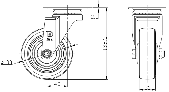 | Rubber Wheel Diameter × Wheel Width 100 x 30.5mm |