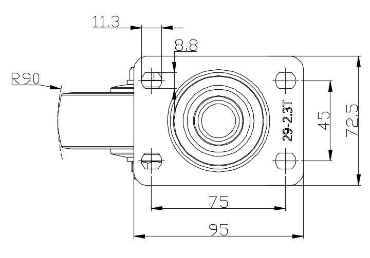 Zine-Plated, Top Plateed Mounting Type Reinforced Polypropylene core with High-Quality Resilient Rubber Wheel Tread Bearing - Plain Bearing. |