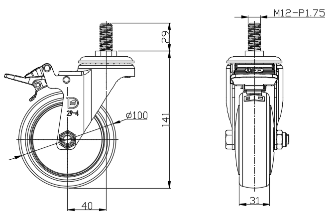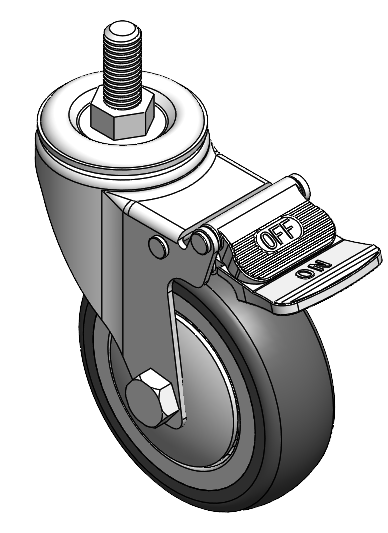 Casters with a Total Brake and With locking system. Threaded Stem Riveted Pressed Fork—M12-
