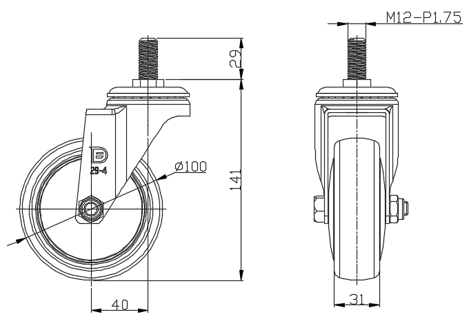 | Swivel Caster, thread-Riveted Stamping Fork—M12- P1.75 Extended control lever surface, Mounting Type - Threaded Stem High-quality Impact Resistance Polypropylene Wheel Center,High-Quality Thermoplastic Rubber (TPR) wheel tread Pearl-colored dark gray, Bearing—Ball Bearing. |