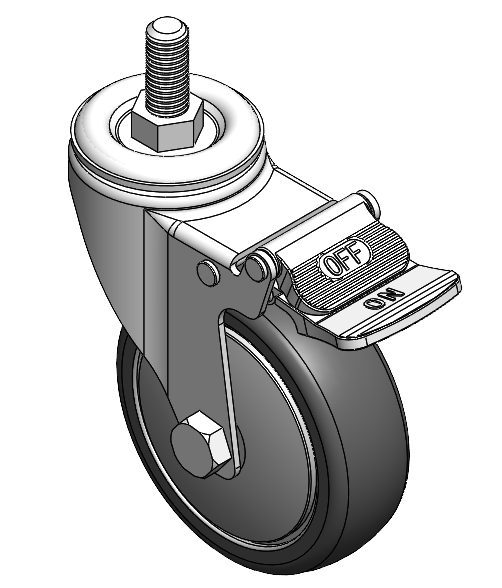 Casters with a Total Brake and With locking system. Threaded Stem, Riveted, Stamping Fork—1/2"-12"