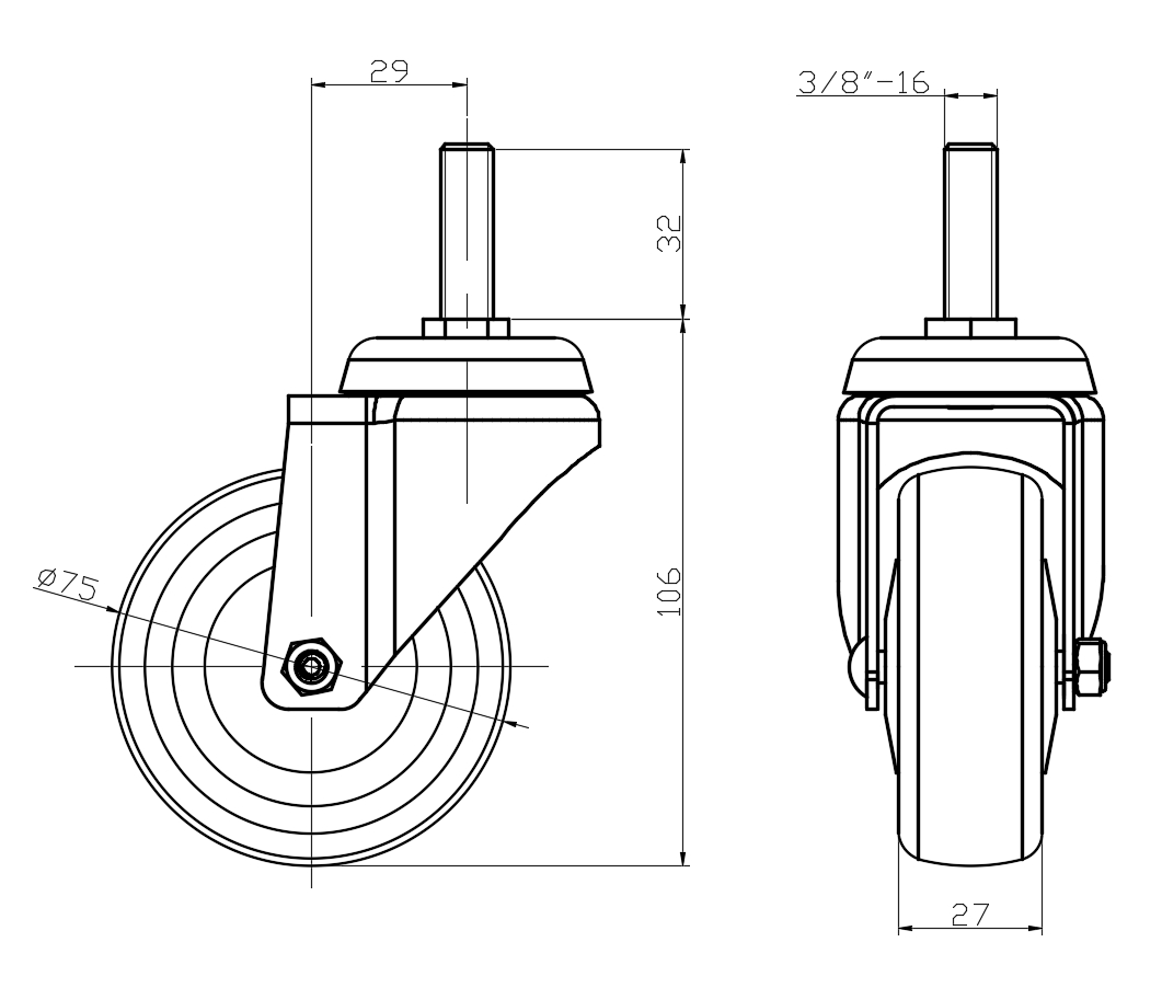 Swivel Caster with Riveted Stamping Fork—3/8"-16"