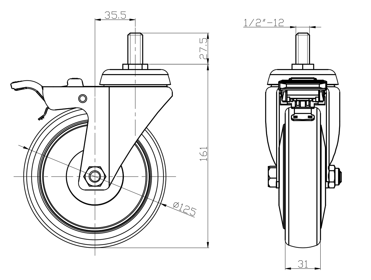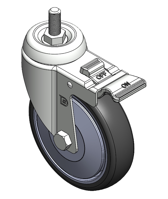 Casters with a Total Brake and With locking system. Threaded Stem Riveted Pressed Fork—1/2"-12"